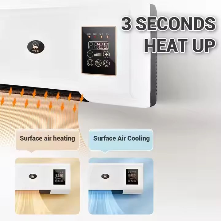 2025 Ultra Quiet Energy Saving Mini Wall Mount Air Heater Cooler Dual Mode Remote Control Adjustable Thermostat for Small Room