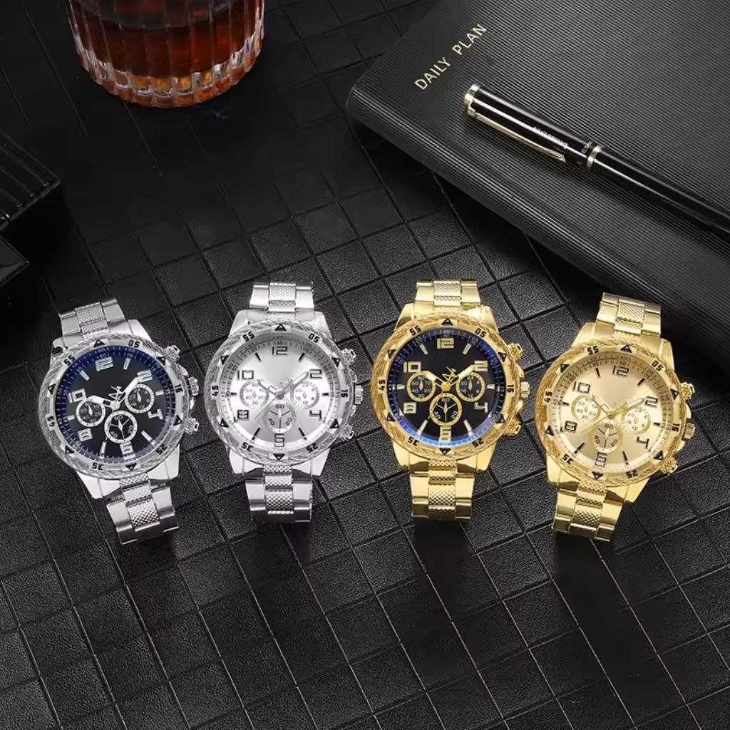Best Selling Men's Quartz Watch with Steel Band Blue Light Dial Large 45mm Diameter Foreign Trade Fashionable Business Style